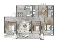 功能布局合理,三个卧室位于房屋两侧,互不干扰,保证私密性。